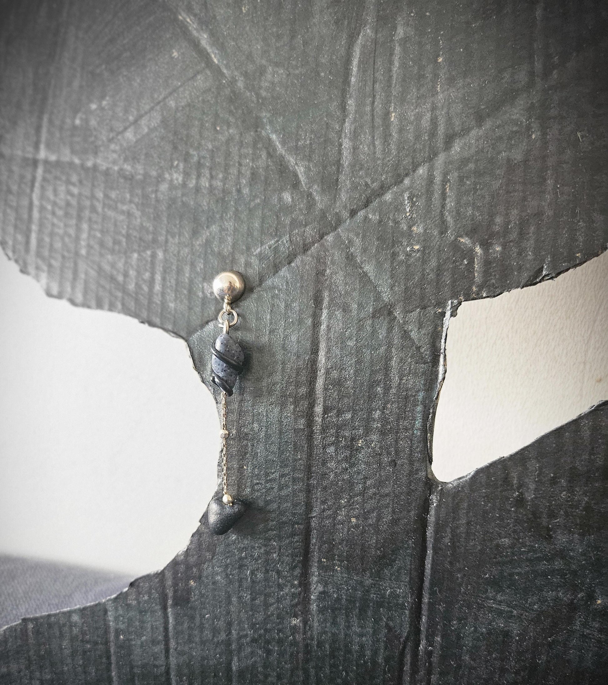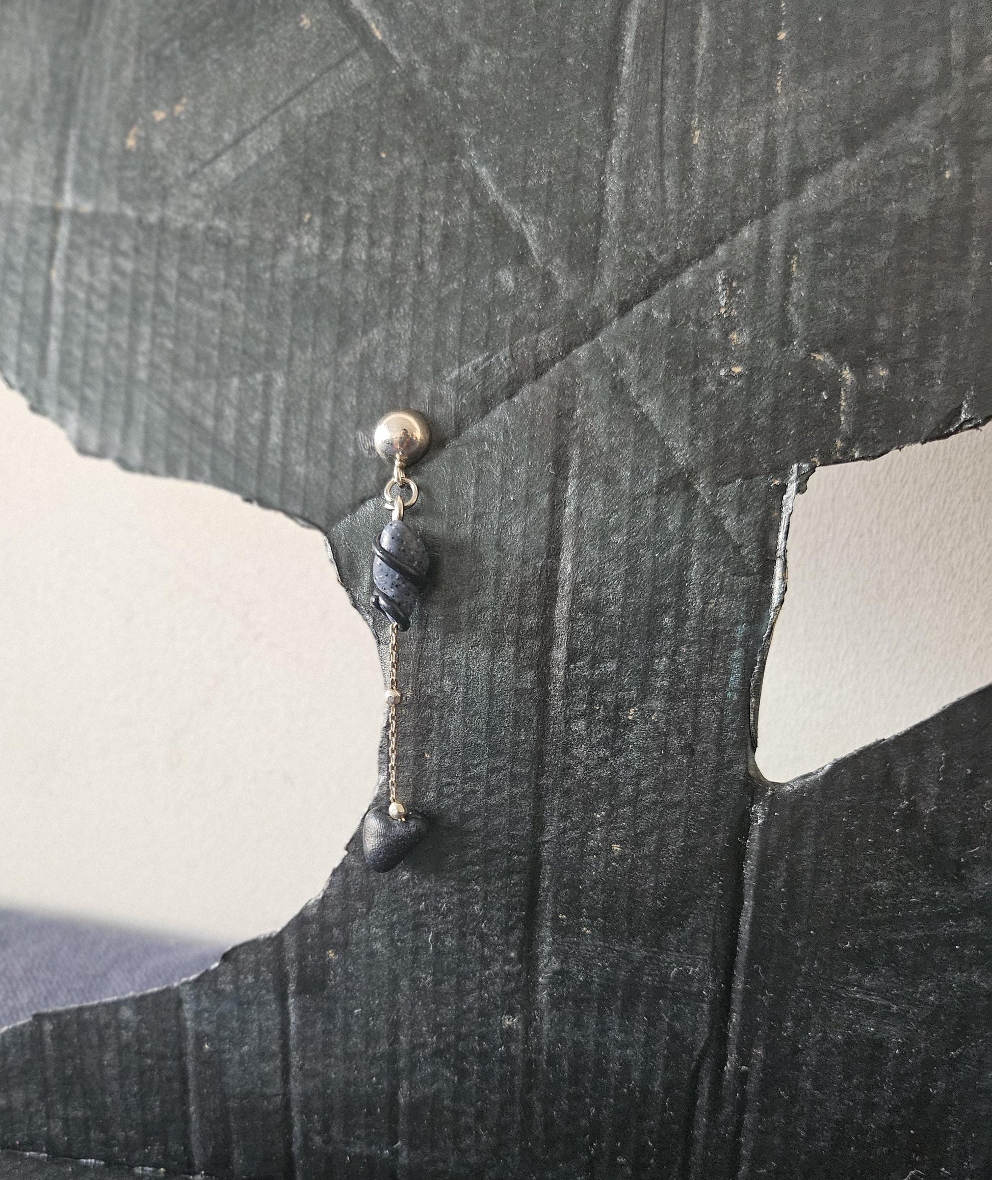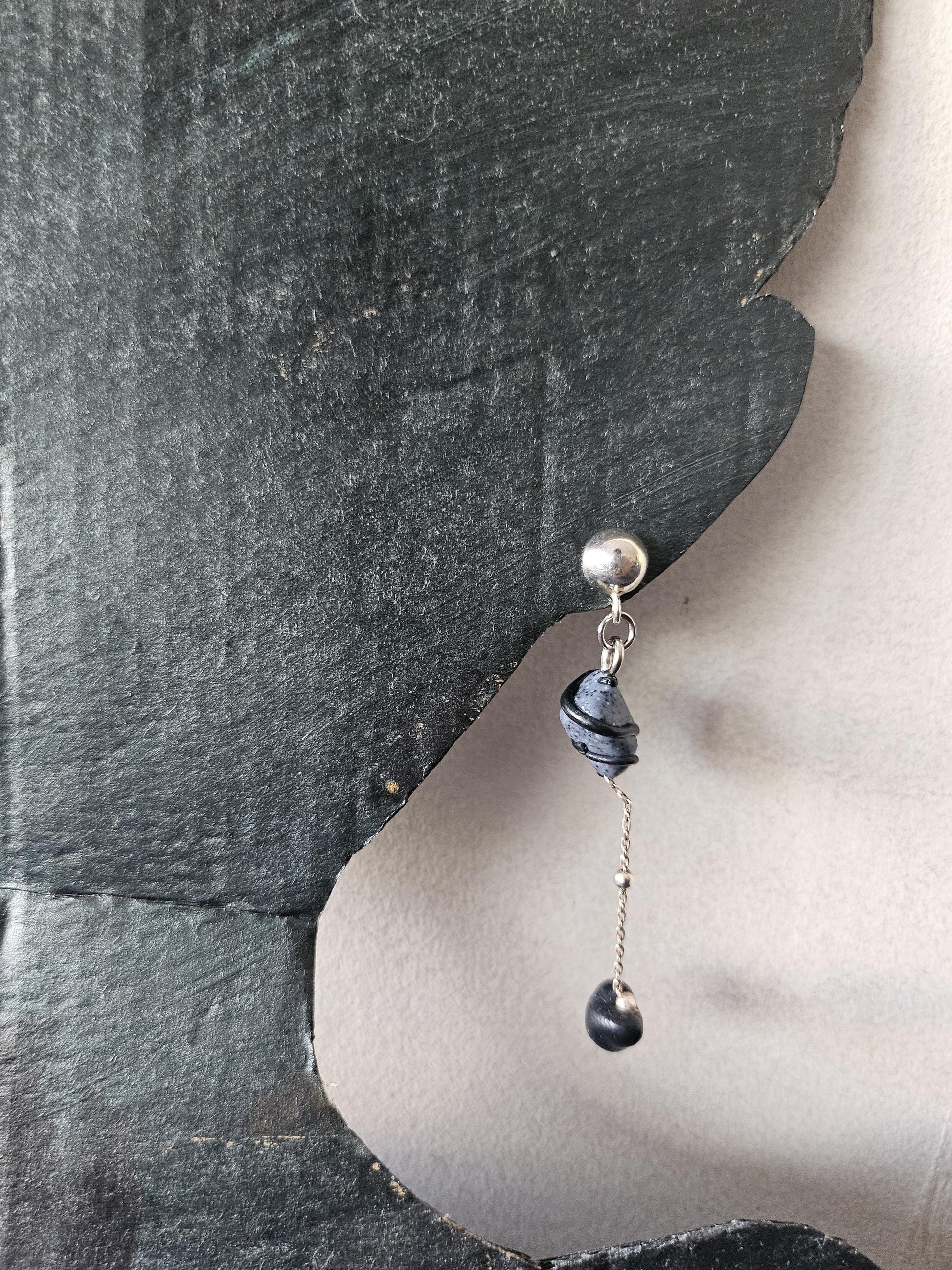 These drop earrings are entirely handmade and assembled in France. They stand out for their modern elegance. Their fine stainless steel ball chain and asymmetrical beads create a unique and refined style.