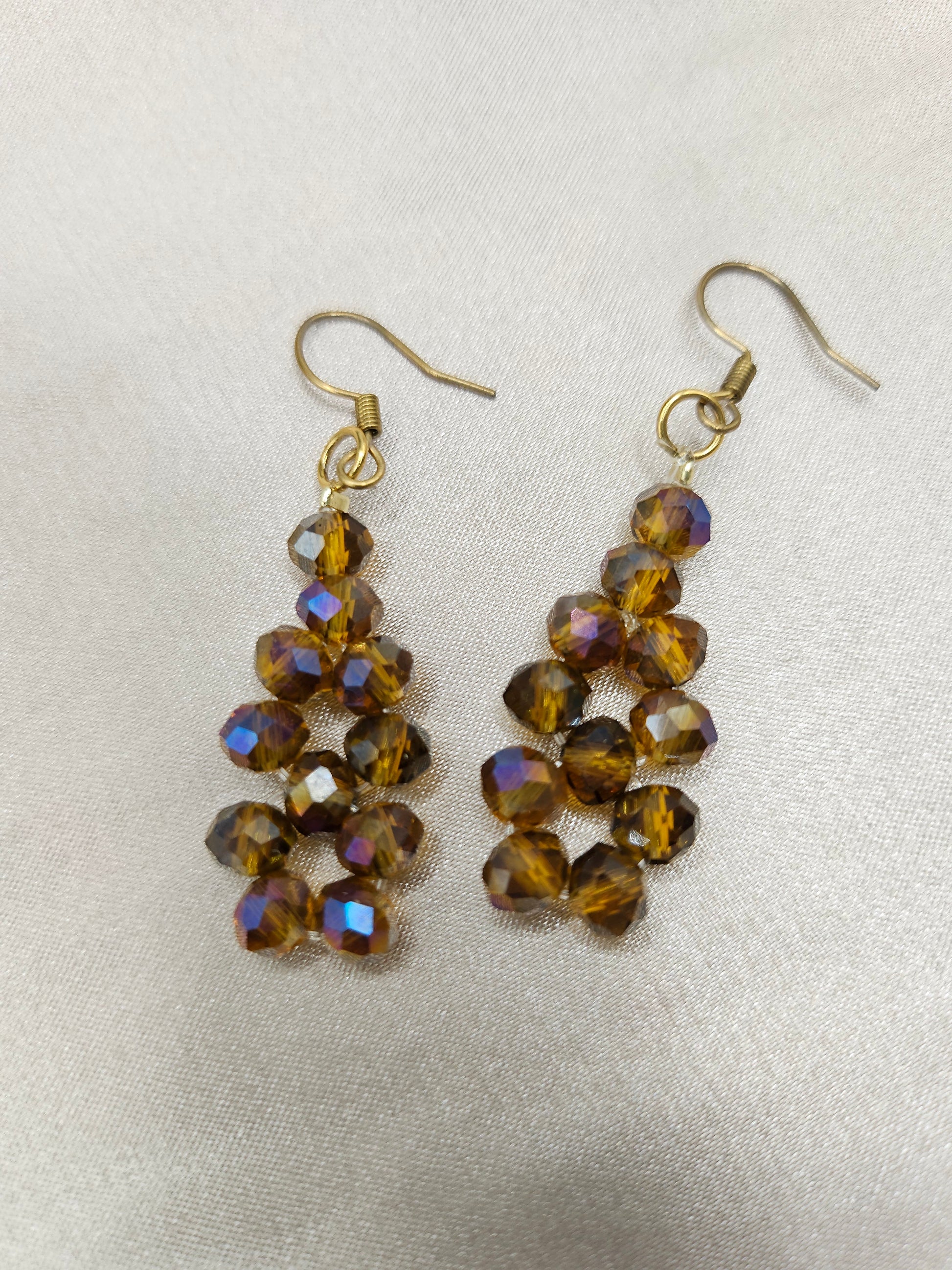 These beautiful drop earrings are entirely handmade and assembled in France. They feature stunning faceted glass beads in rich brown tones that elegantly capture and reflect the light.