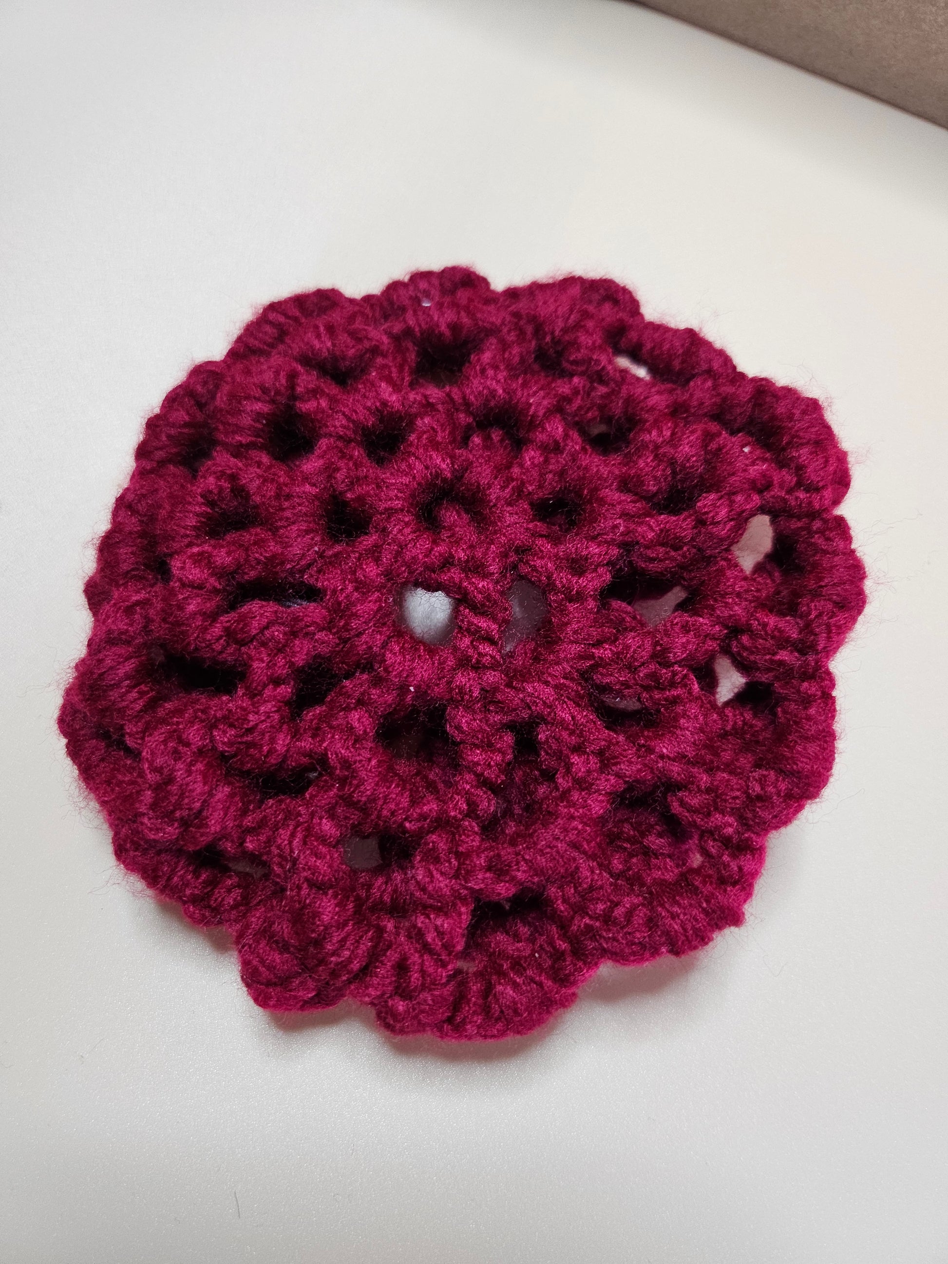 This crochet bun hairstyle is entirely handmade. It is made with wool in different colors. Each piece is unique and adds a refined, artisanal touch to your hairstyle.
