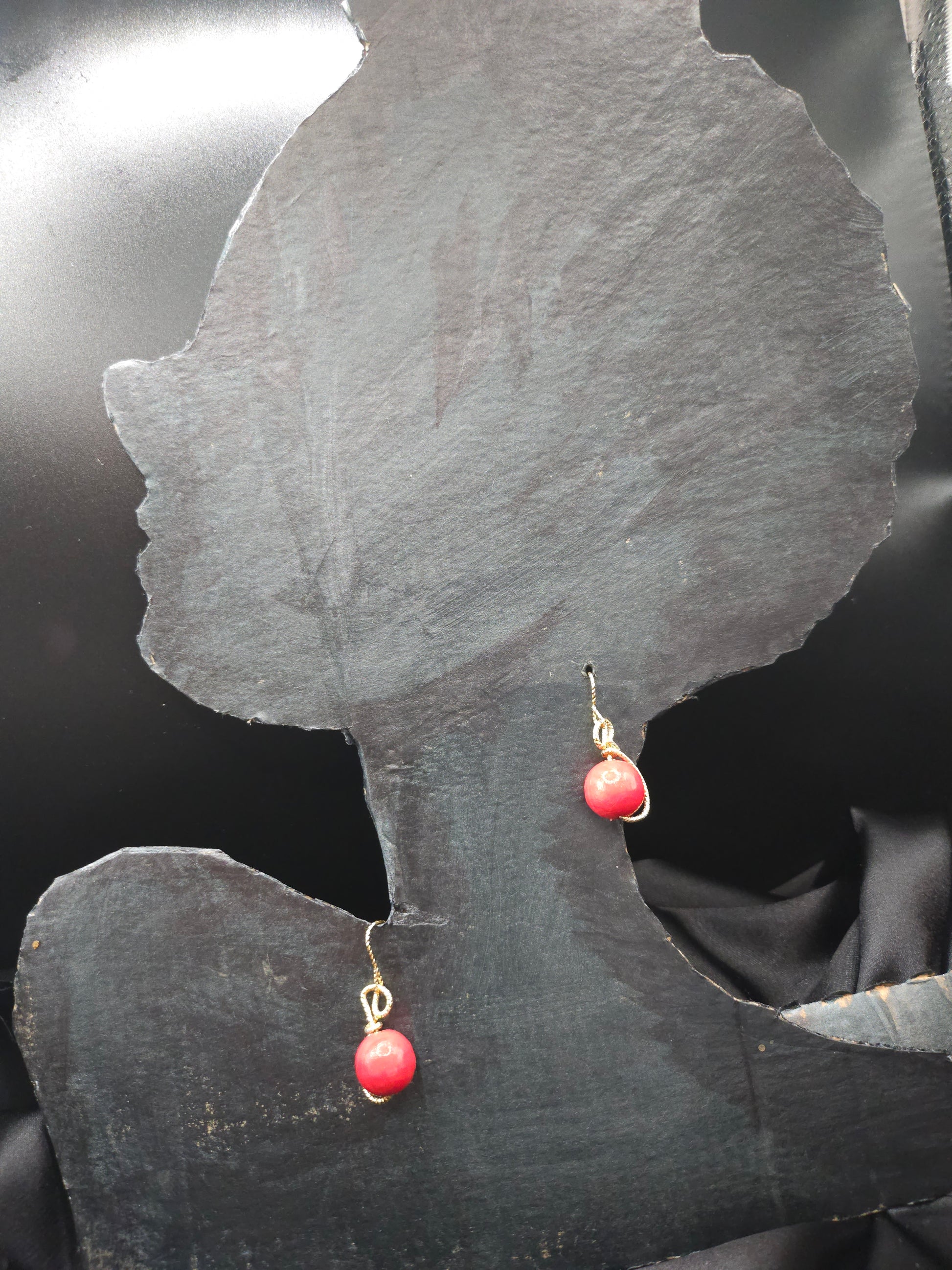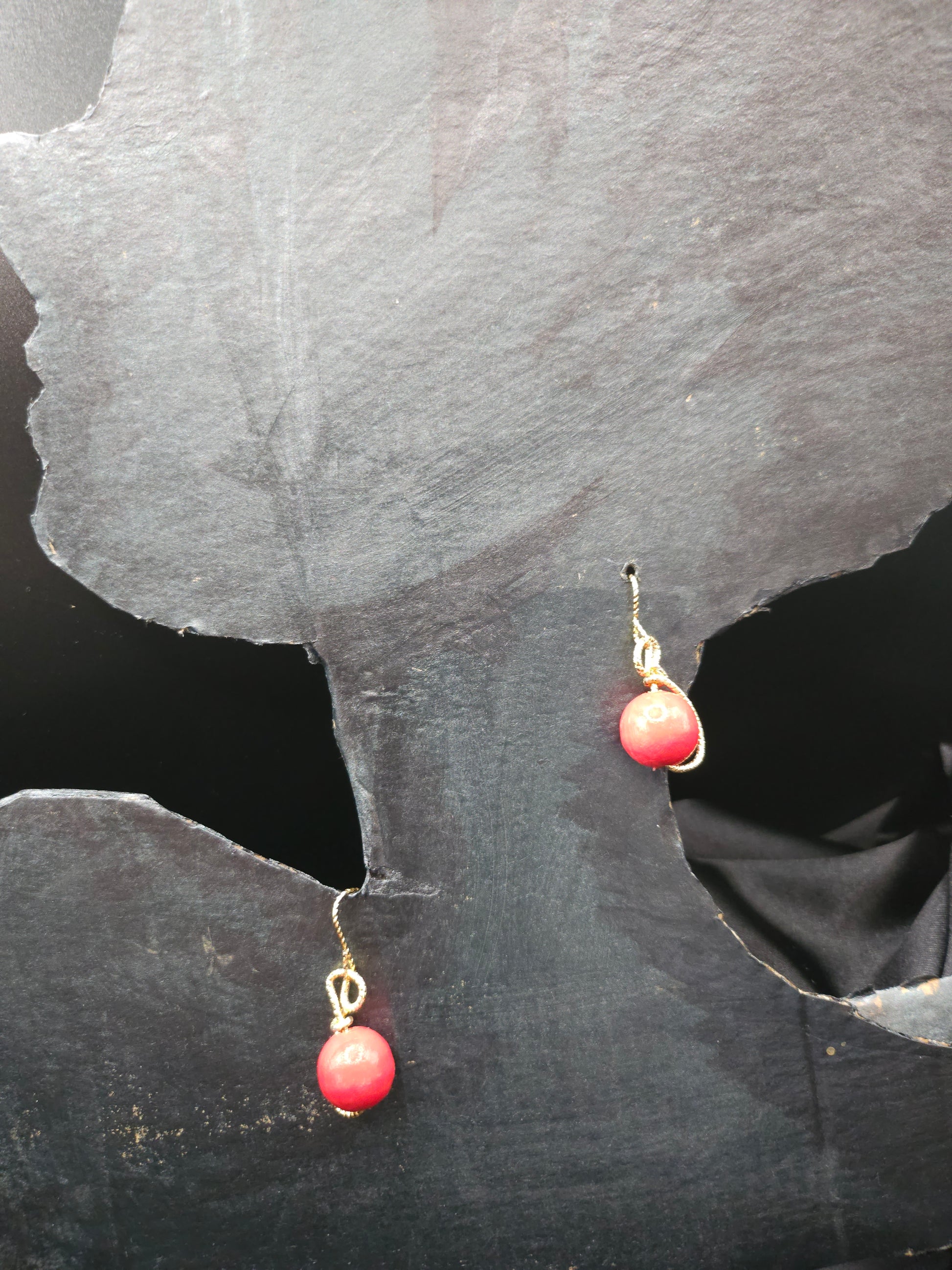 Ces petites boucles d'oreilles rondes sont entièrement modelées à la main et assemblées en France. Leurs perles en bois rouge apportent une touche de chaleur naturelle et d'authenticité à votre look. Le fil d'or qui entoure délicatement chaque perle crée un contraste élégant et raffiné.