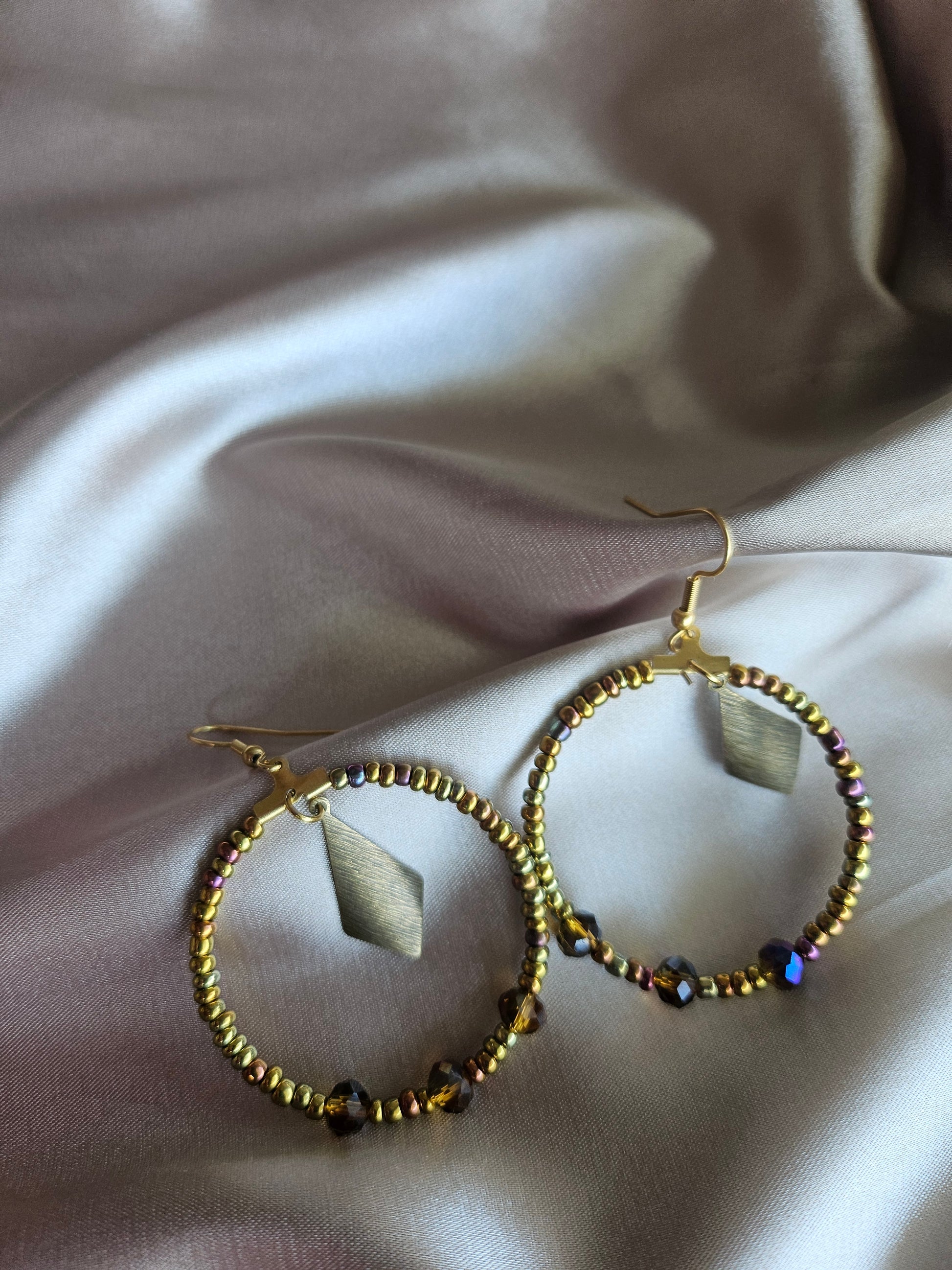 Boucles d'oreilles artisanales en perles iris métalliques - Bijoux fait main