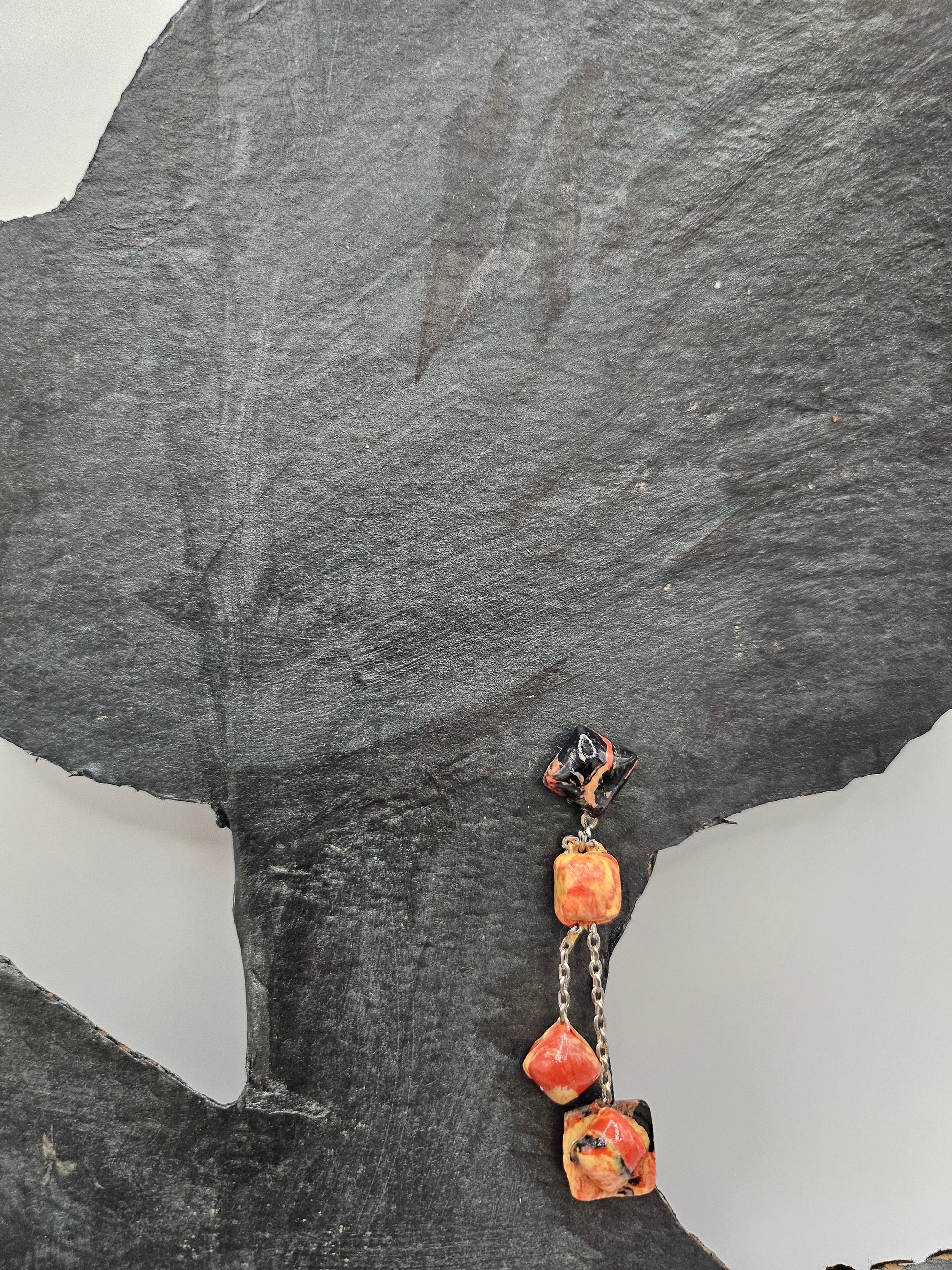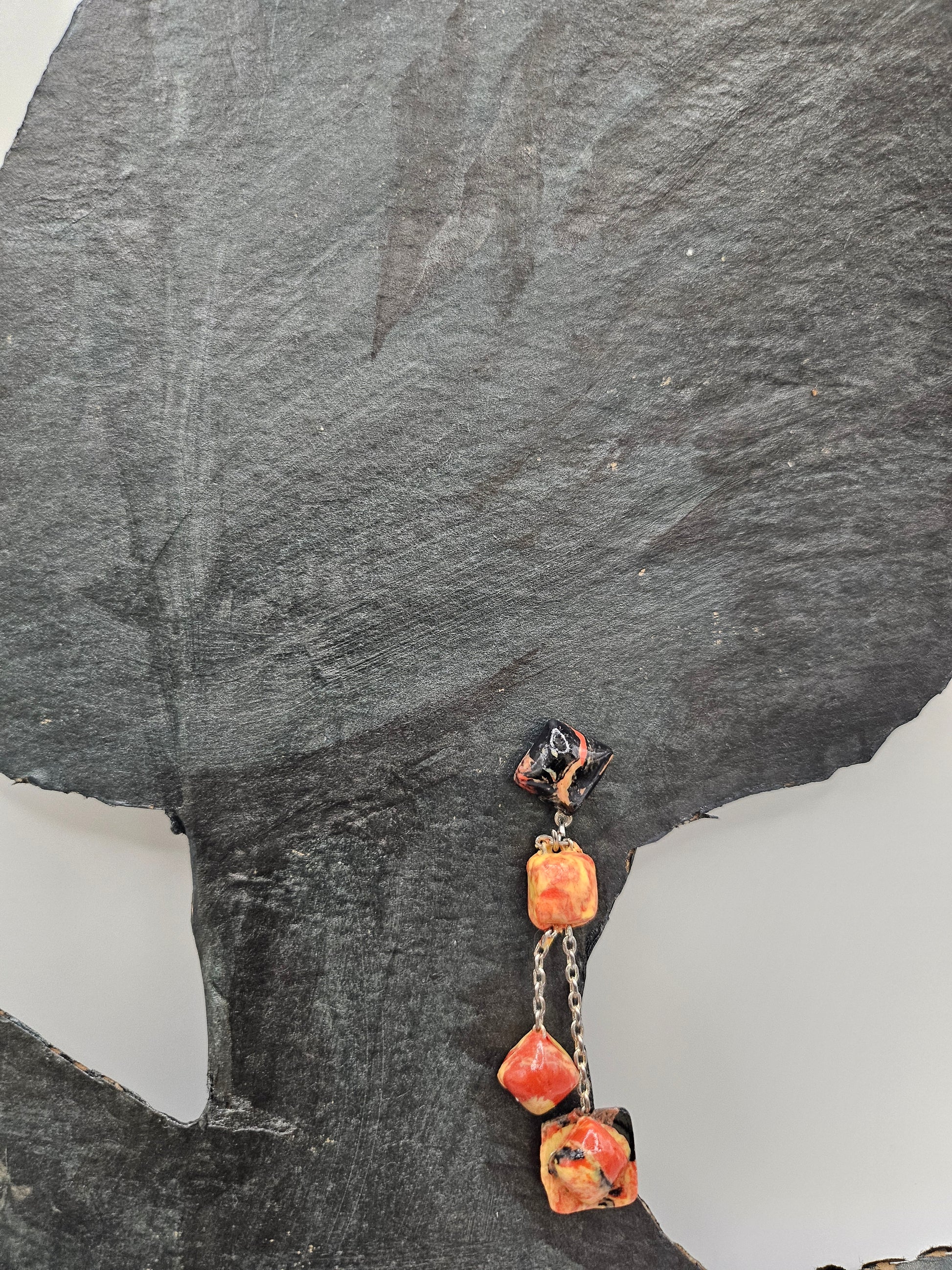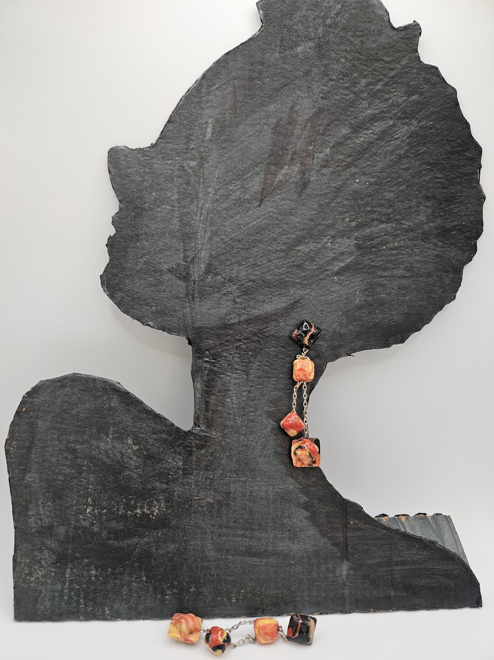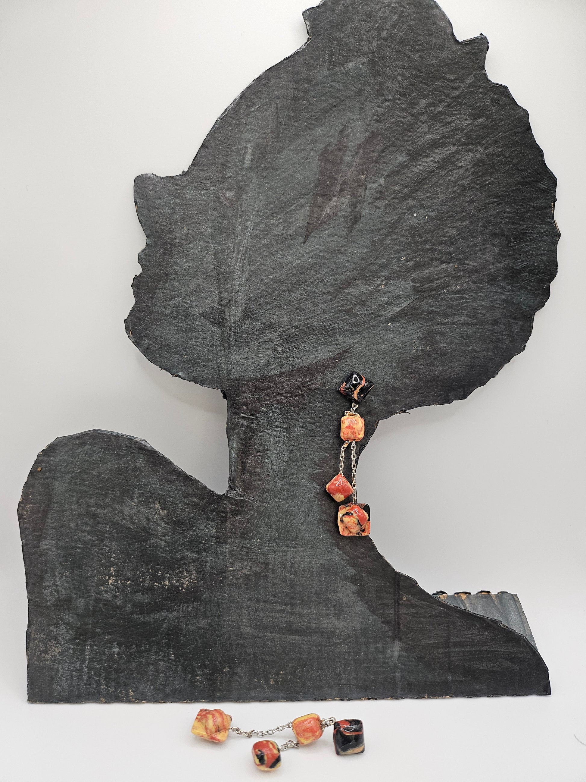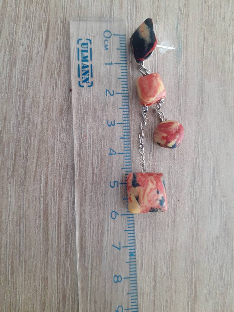 Boucles d'oreilles chaîne acier inoxydable avec perles géométriques en pâte polymère.